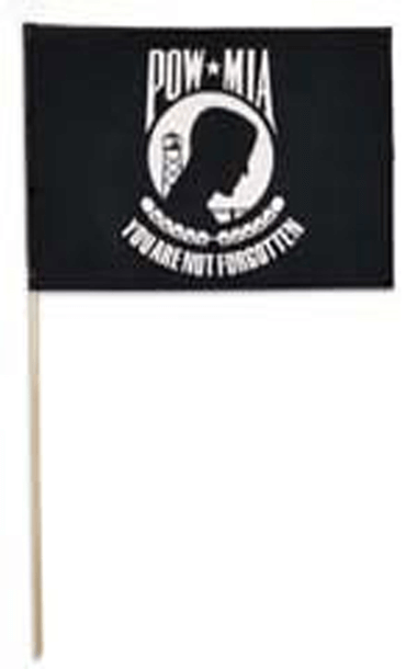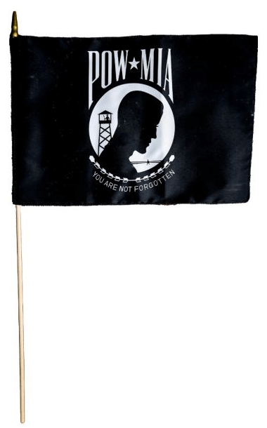 Thank You for Choosing our 4″ x 6″ No Hem Cotton Pow-Mia Stick Flags with Tip. These Flags are Printed on a Heavy Cotton Fabric and Cut around All Edges so Hemming is Not Required. These Cotton Pow-Mia Stick Flags are Stapled to Natural Wood 3/16″ x 10″ Dowels using 2 Staples. Great for Large Promotions and Give-A-Ways at Parades. Because of our Low Price, you Must Order 100 or more.